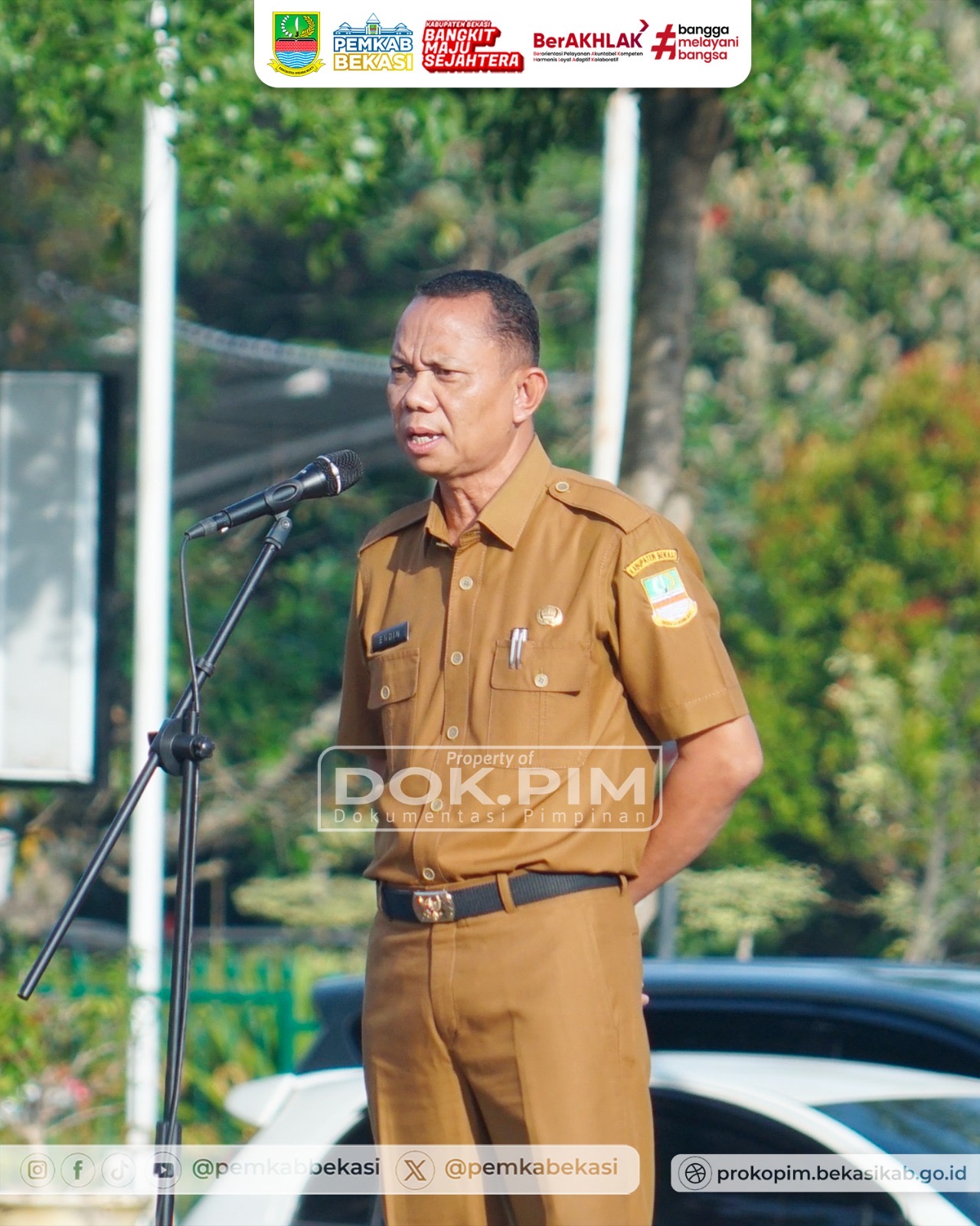CIKARANG PUSAT - Mengawali pekan pertama di bulan April 2026, Pemerintah Kabupaten Bekasi menggelar Apel Pagi ASN di Plaza Pemda Cikarang Pusat, Senin (6/4). Apel tersebut dipimpin langsung oleh Sekretaris Daerah Kabupaten Bekasi, Endin Samsudin, selaku Pembina Upacara, diikuti oleh jajaran ASN pejabat struktural dan fungsional serta Pegawai Pemerintah dengan Perjanjian Kerja (PPPK) di lingkungan Pemkab Bekasi.
